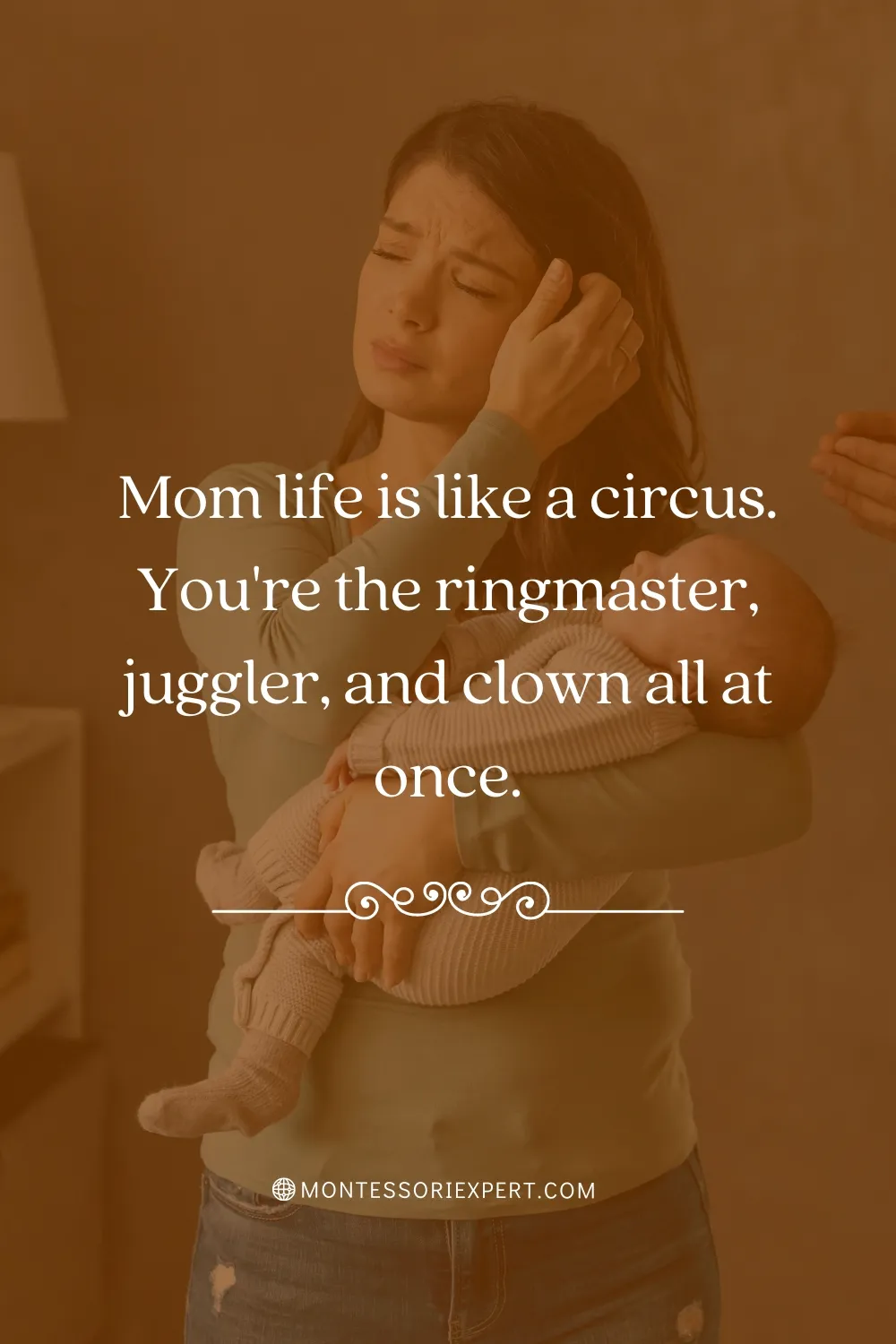 4. “Mom life is like a circus. You’re the ringmaster, juggler, and clown all at once.”
