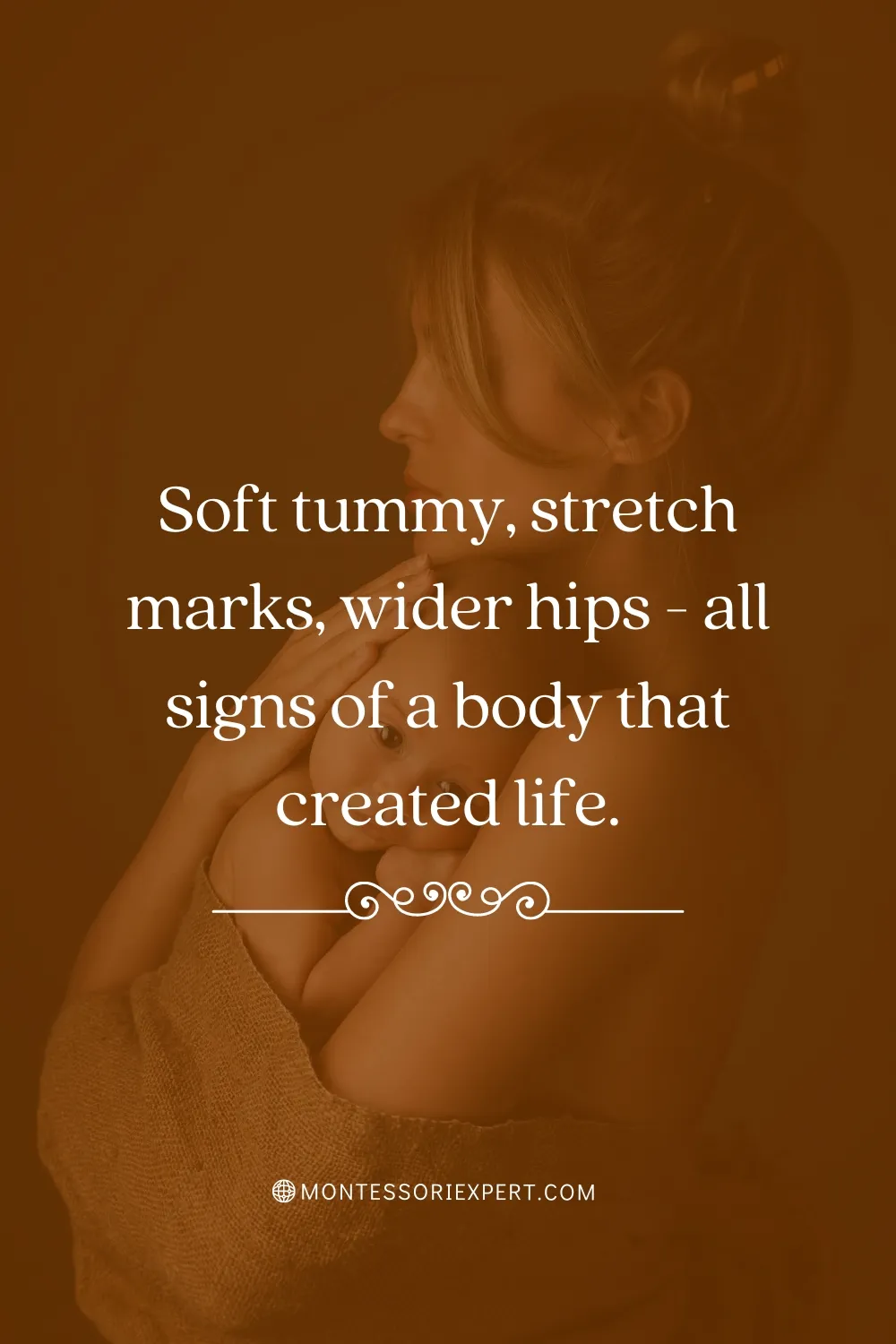 6. “Soft tummy, stretch marks, wider hips – all signs of a body that created life.”