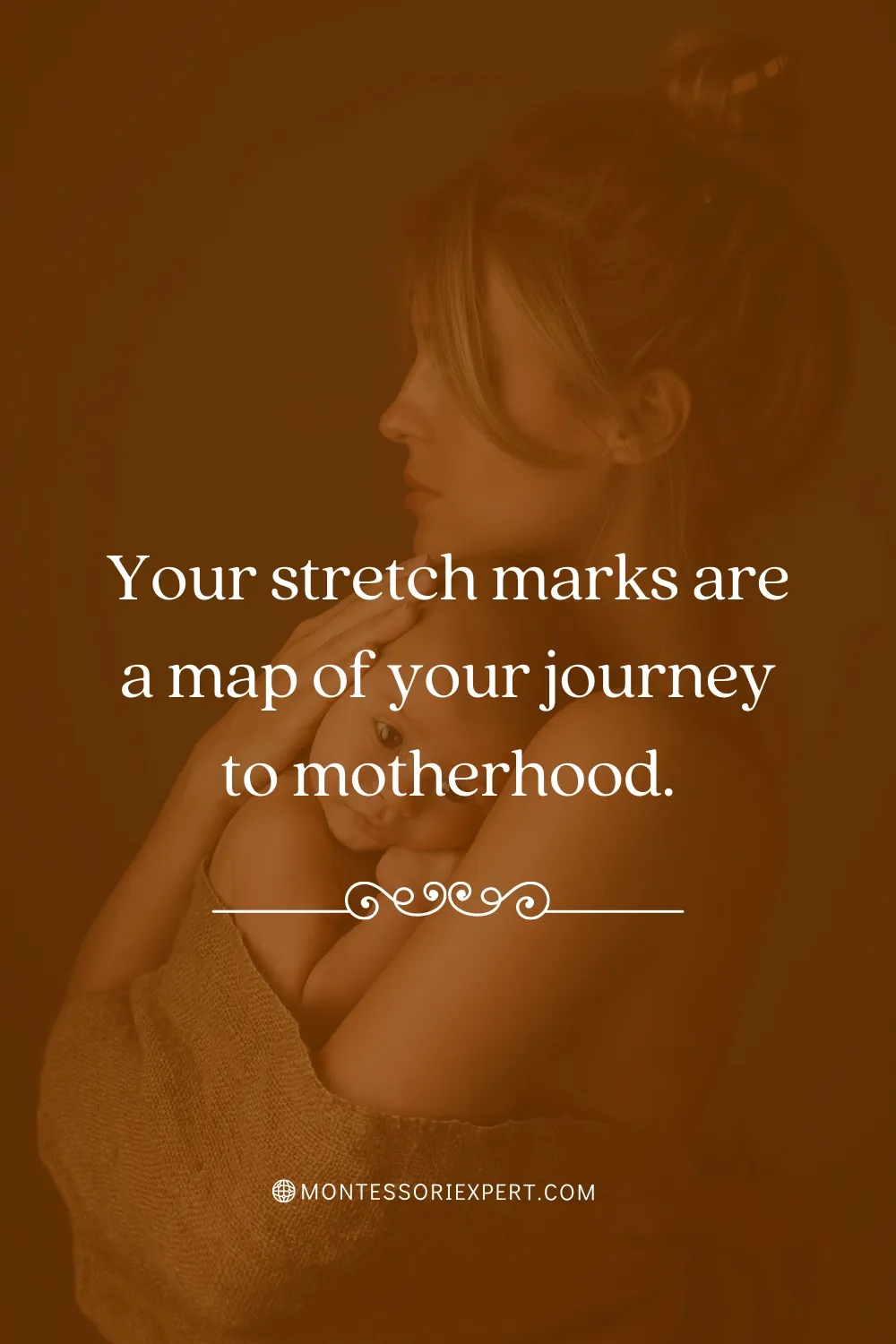 Stretch marks are a common concern for many new moms, but they’re also a testament to the incredible journey your body has been through. These quotes encourage you to embrace your stripes and see them as beautiful reminders of your strength.